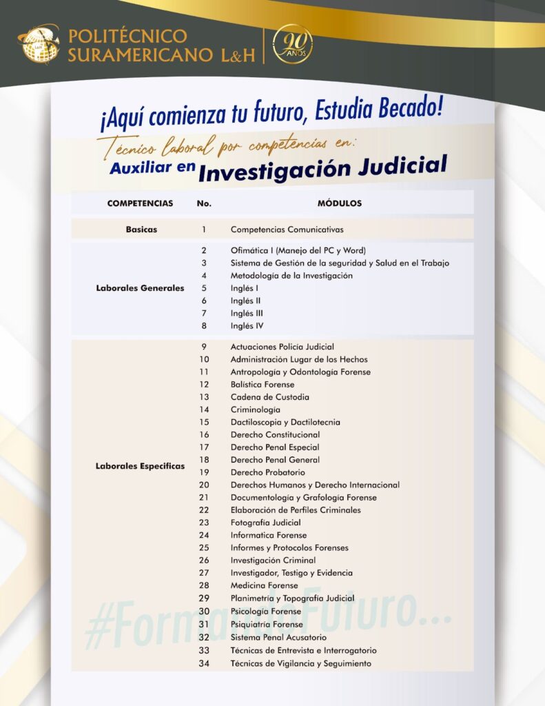 Técnico Laboral por Competencias en Auxiliar en Investigación Judicial